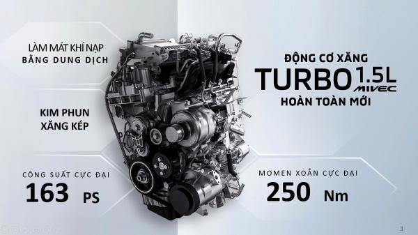 Mitsubishi trang bị cho Destinator động cơ xăng tăng áp 1.5L MIVEC Turbo cho công suất 163 PS và mô-men xoắn 250 Nm. Đi kèm là hộp số CVT mượt mà, phù hợp cho di chuyển trong đô thị lẫn đi xa.